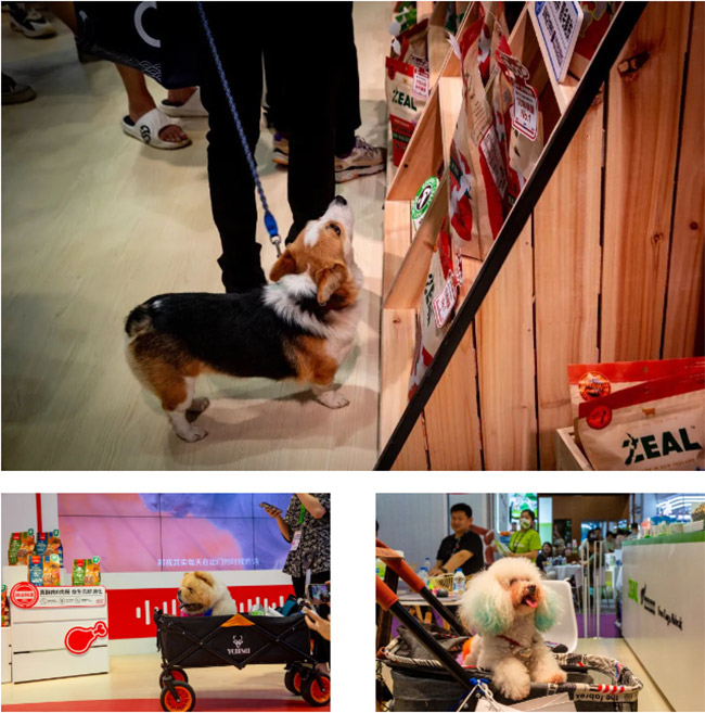 不仅安排有多场精彩直播,展台现场更有不少达人和参展观众携宠亮相,展架上多款零食好物吸引一批批萌宠驻足停留。