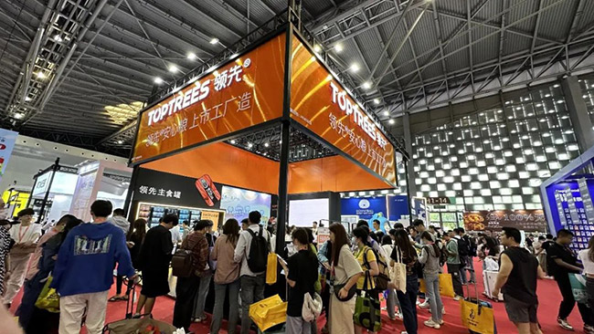 Toptrees领先®携品牌好物及人气活动亮相展位,吸引消费者及合作伙伴频频互动。扫码活动火热进行,主粮试吃及定制款家财万罐手提袋,现场派发,福利多多,惊喜连连。打卡超愈角,获取领先定制饮品,高颜值,可抽奖,撕开财源罐罐来!让消费者伴随好运而归。