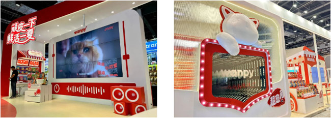 为进一步深入年轻养宠用户的消费心智,它博会开展前一日,wanpy顽皮®携手HIP-HOP歌手KNOWKNOW打造的萌宠TVC《顽皮小可爱》正式官宣上线。此次它博会上,wanpy顽皮®的展台设计将音乐与品牌元素充分融合,夏日音乐节的活泼氛围通过一系列展台设计充分彰显。集市推车形式活泼灵动,红白配色突出重点鲜肉产品,整体主题与线上天猫大牌日“顽皮一下,鲜活一夏”相呼应,“超愈角”的深渊美妆镜的设计也吸引了一大波年轻观众打卡拍照。