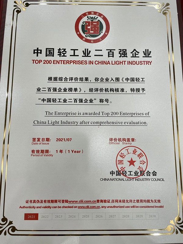 中国轻工业联合会是轻工业全国性、综合性、具有服务和管理职能的工业性组织。每年公布的榜单在行业中具有极高权威性和广泛影响力,是衡量中国轻工业企业发展活力的重要标准。其中“中国轻工业二百强企业”榜单主要评价企业的综合实力,要求企业不仅发展均衡,而且要具备较强的市场活力。