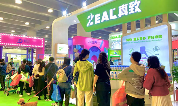 而ZEAL真致展台,更是带来了极受消费者喜爱的明星产品——ZEAL宠物犬猫通用牛奶。26号观众开放日上午,入场时间一到,便有大批慕名而来的忠实粉丝们直奔ZEAL展台,只为打卡这款风靡全球的“网红”牛奶。