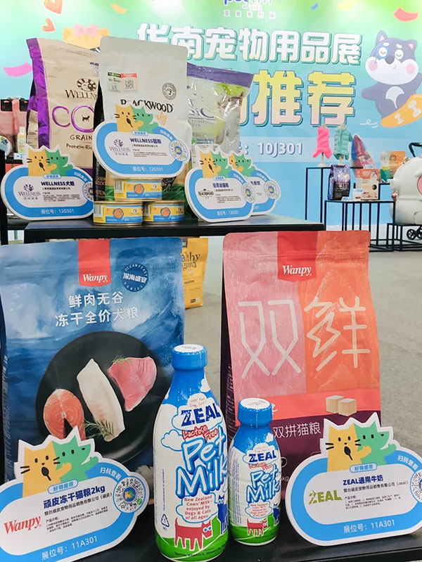 值得一提的是,Wanpy顽皮鲜肉无谷冻干粮、Wanpy双鲜粮和ZEAL真致宠物牛奶还被华南展官方选作优质好物,在“好物推荐”展台特别展出。