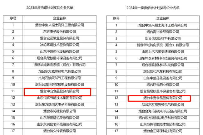 烟台“倍增计划”奖励企业名单