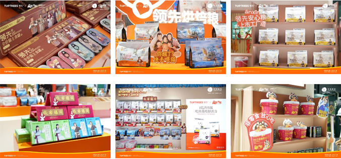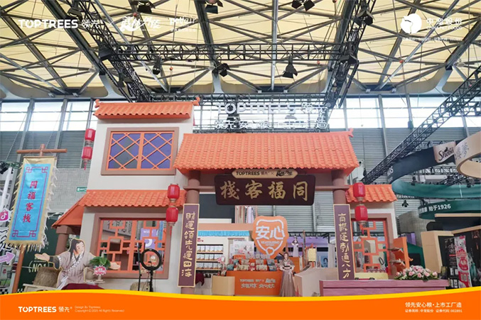 Toptrees领先®以“有福同享,安心成长”为主题,携手国民级经典IP“武林外传”创新亮相。展台整体以鲜明的品牌橙色为主色调,复刻剧中经典场景“同福客栈”。现场通过场景复刻、互动玩法、联名产品展区,为到展用户营造了“好玩、好逛、好买”的逛展氛围,提升品牌辨识度的同时,进一步传递“领先安心粮,上市工厂造”的品牌核心理念。