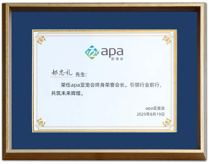 荣任apa亚宠会终身荣誉会长